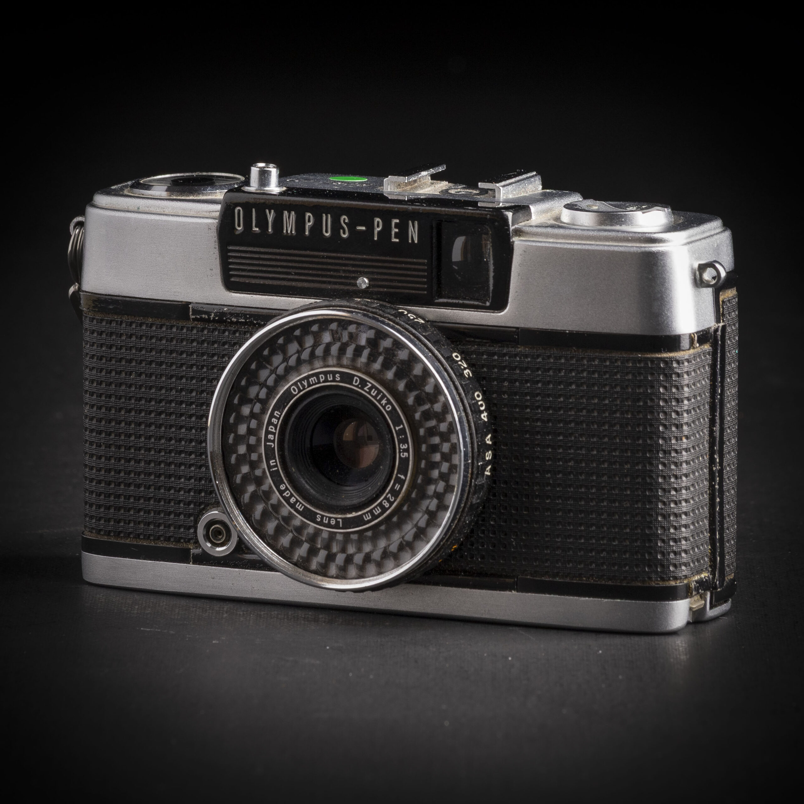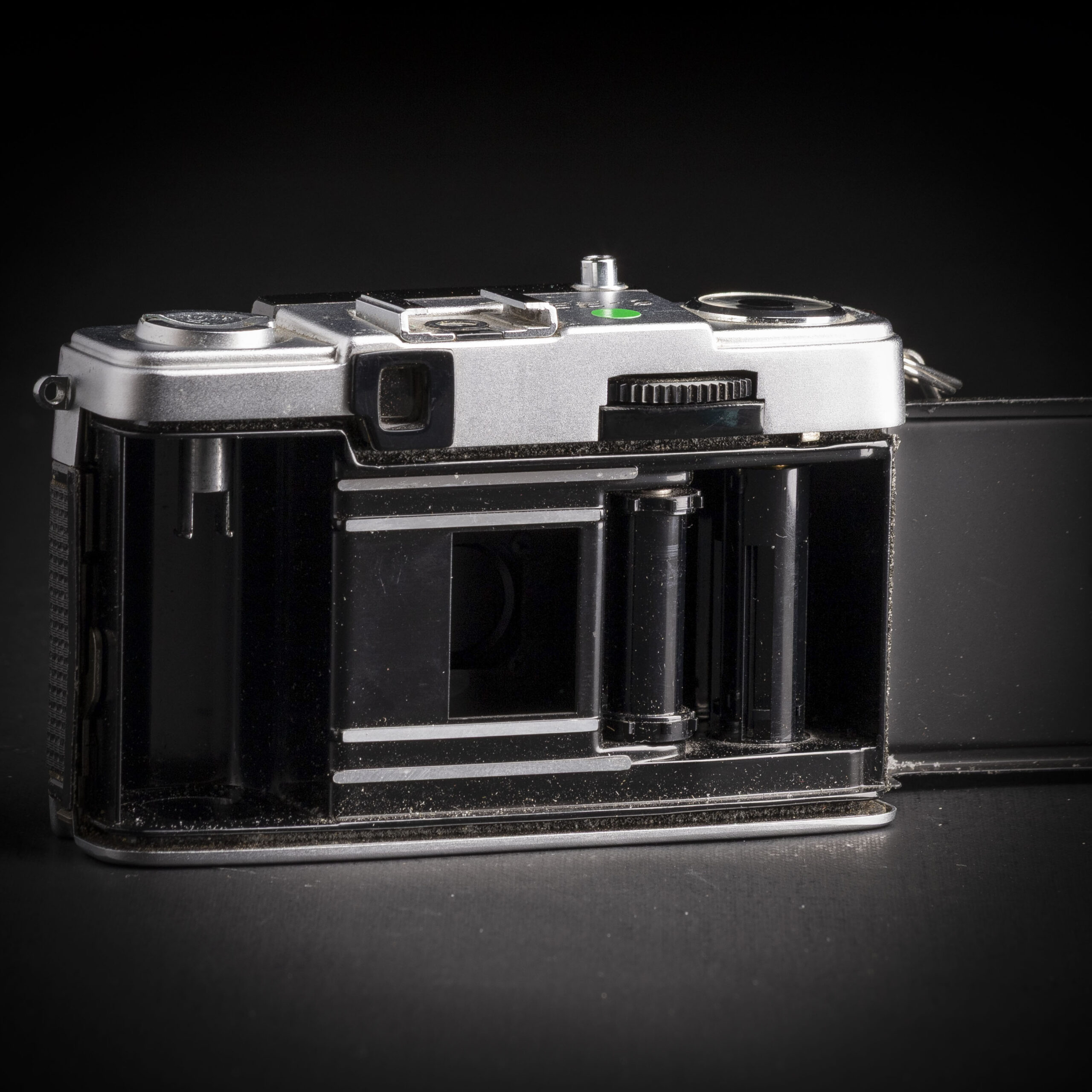 Felezős (half frame) fényképezőgép. Normál, 36 kockás filmre 72 felezett méretű, álló folrátumú képet készíthetsz vele.